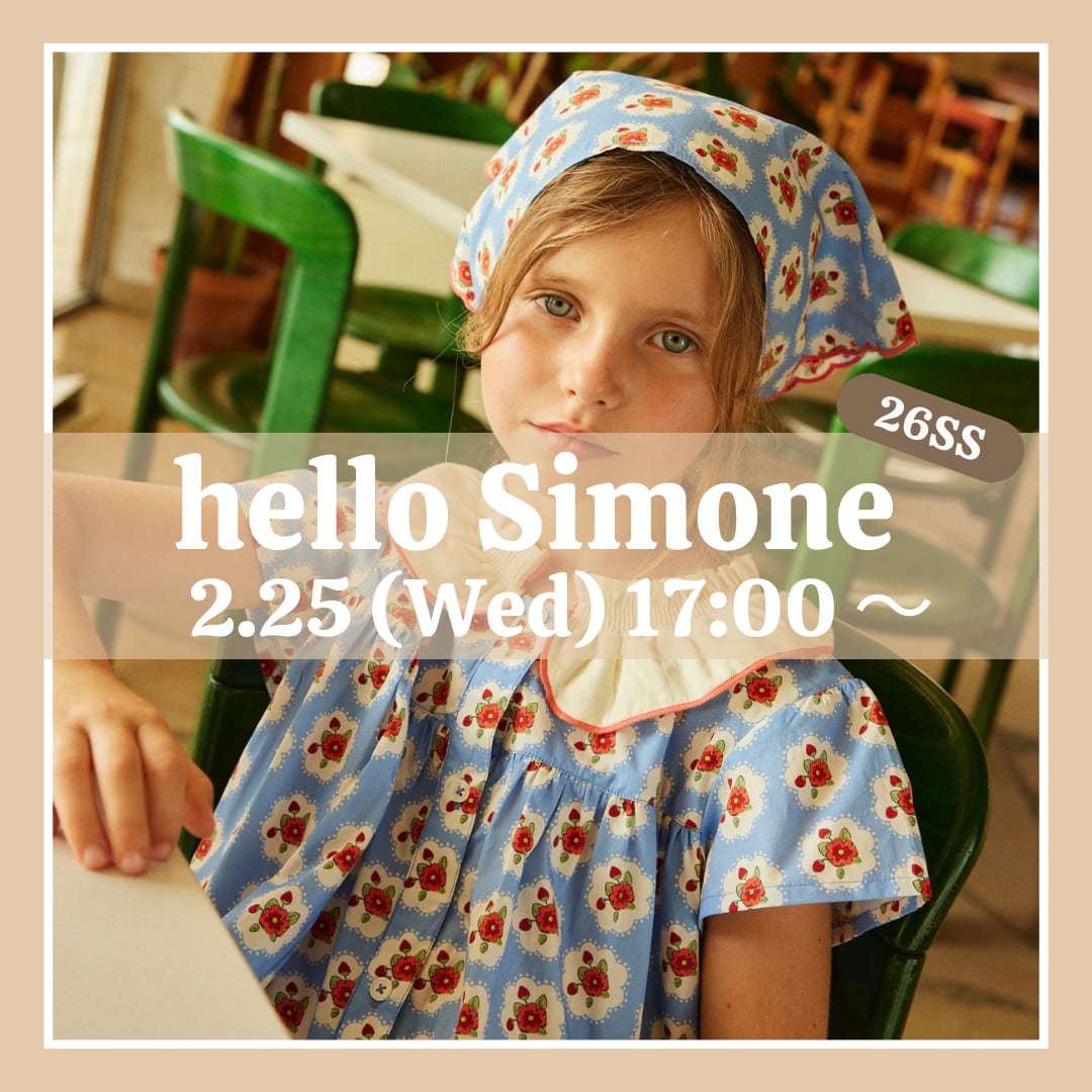 - 2026/2/18(水) 2月25日(水)17:00〜 hello Simone 26SS drop1 販売START!