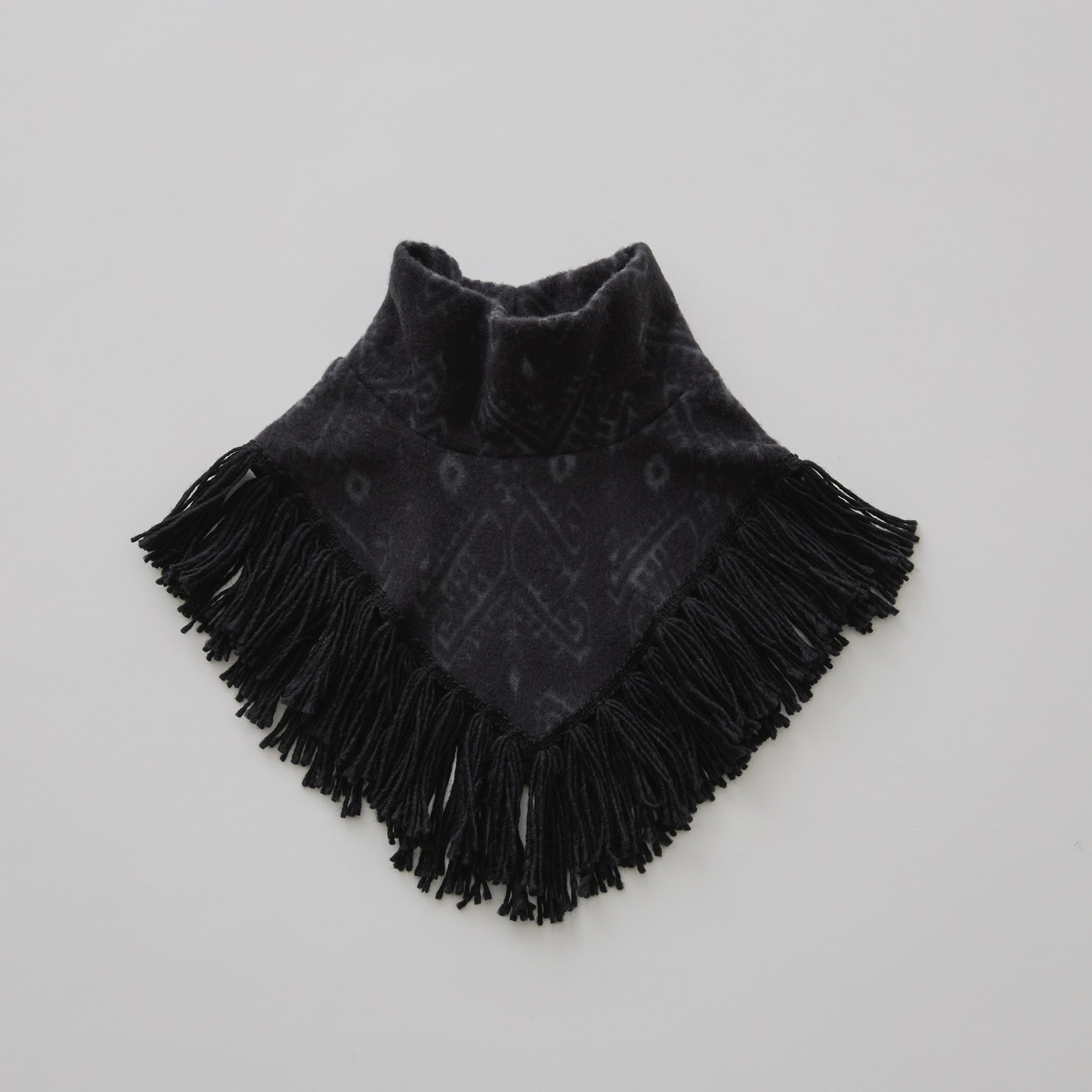 暖かいジャガードのフリンジケープ。