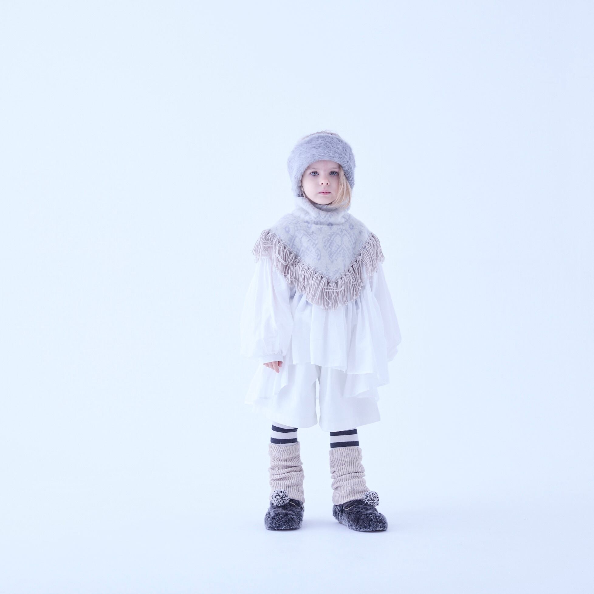 雪の結晶柄を元にオリジナルジャガードにしたふわふわなテキスタイルのフリンジケープ&バニーボンネット、マフラー、新デザインのニットマント&ビーニーなどノスタルジックなコーディネートが楽しめるコレクションです!