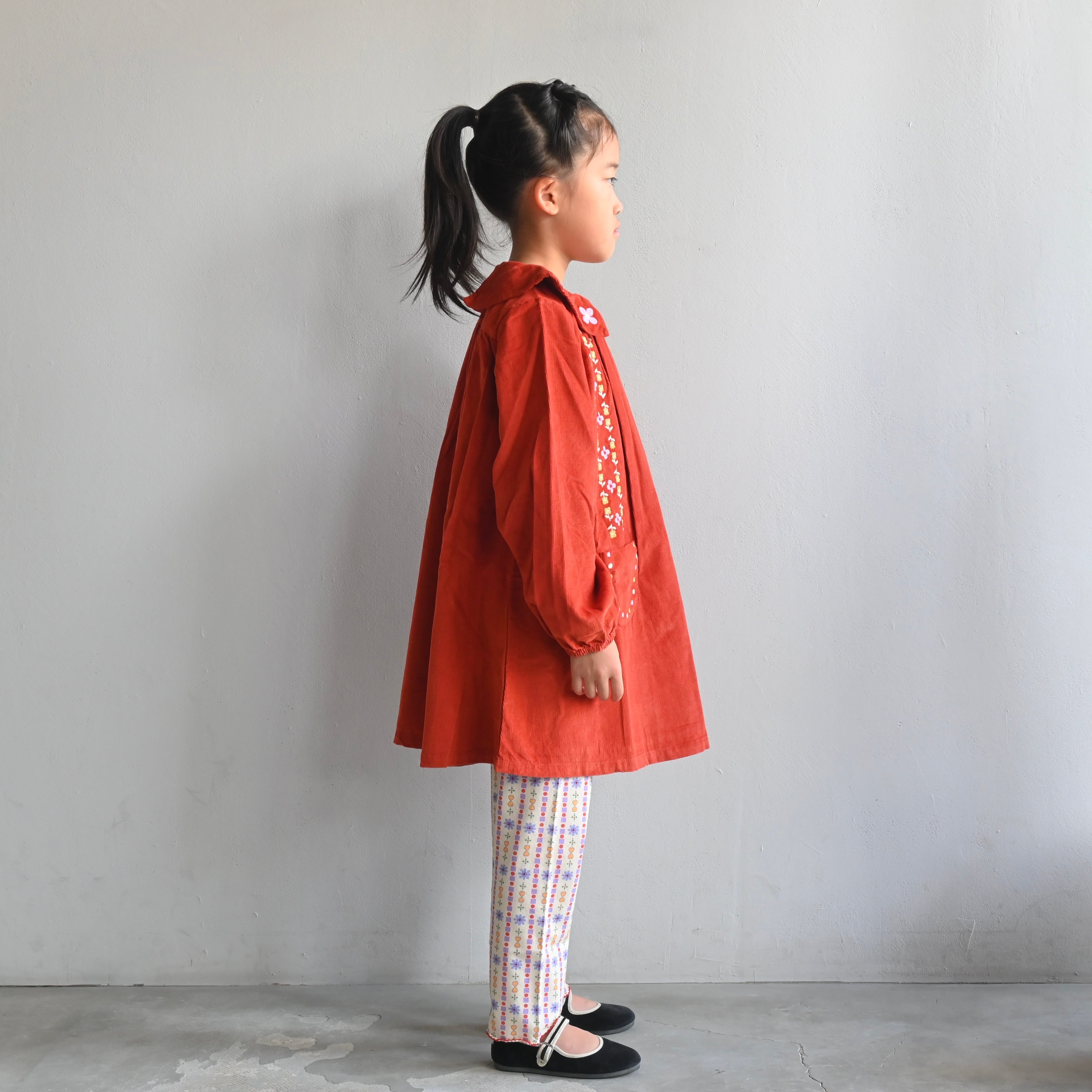 襟のフラワー、ポケットのドットなど細かな部分の刺繍っぷりもキュート◎