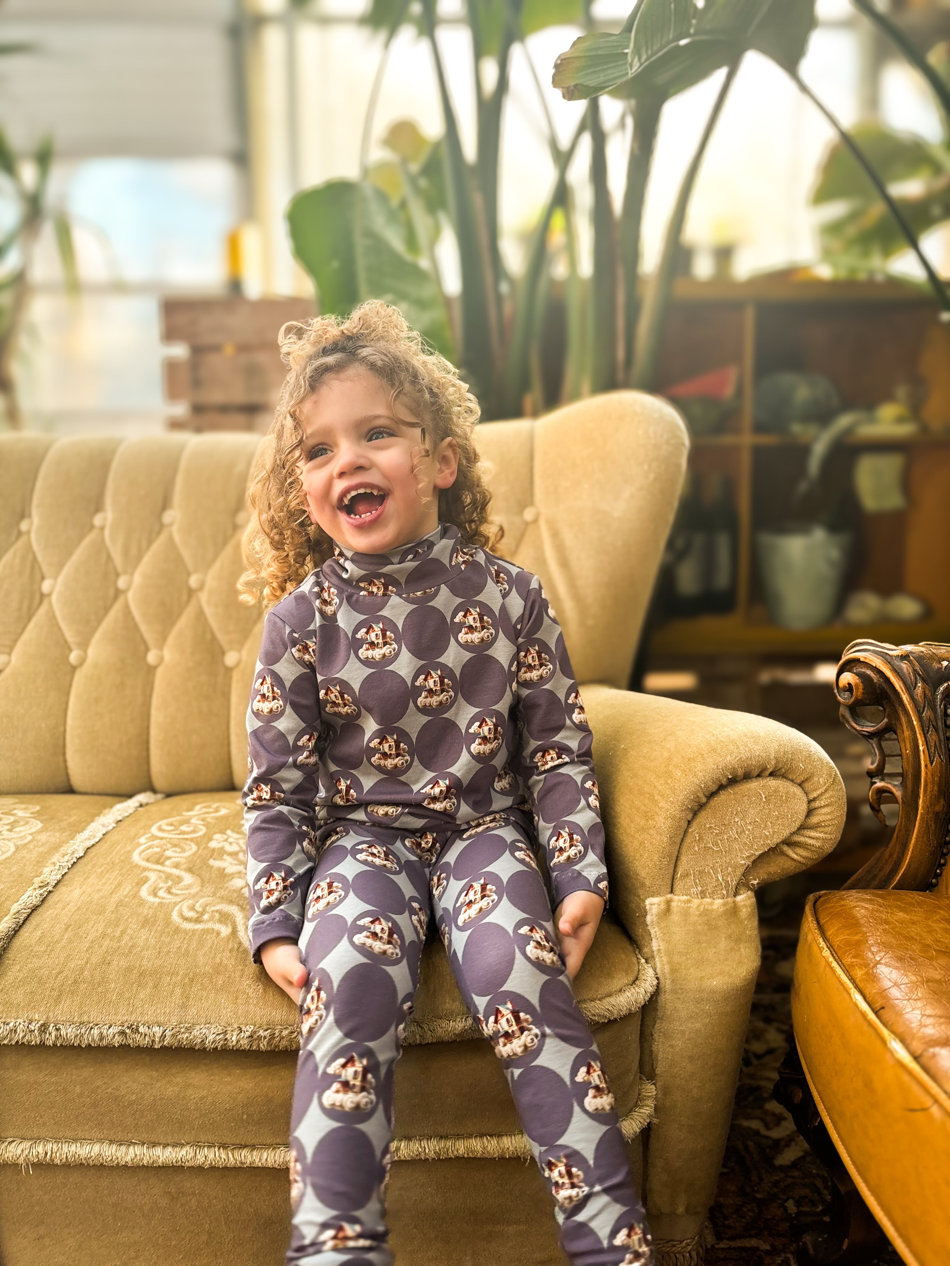 雲の上のお家イラストのレギンス。