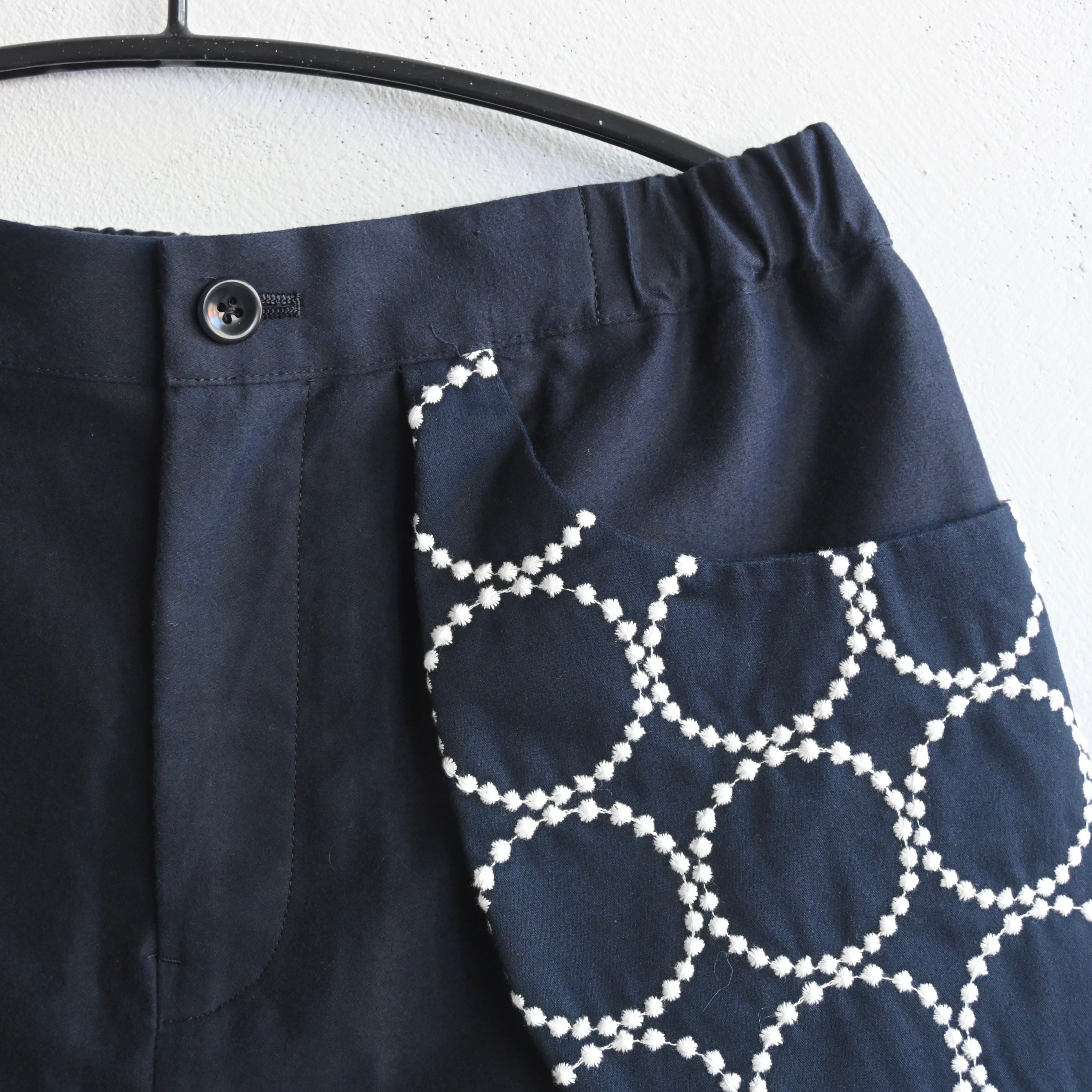 ポケットのtanbourine刺繍が目を惹くパンツ。