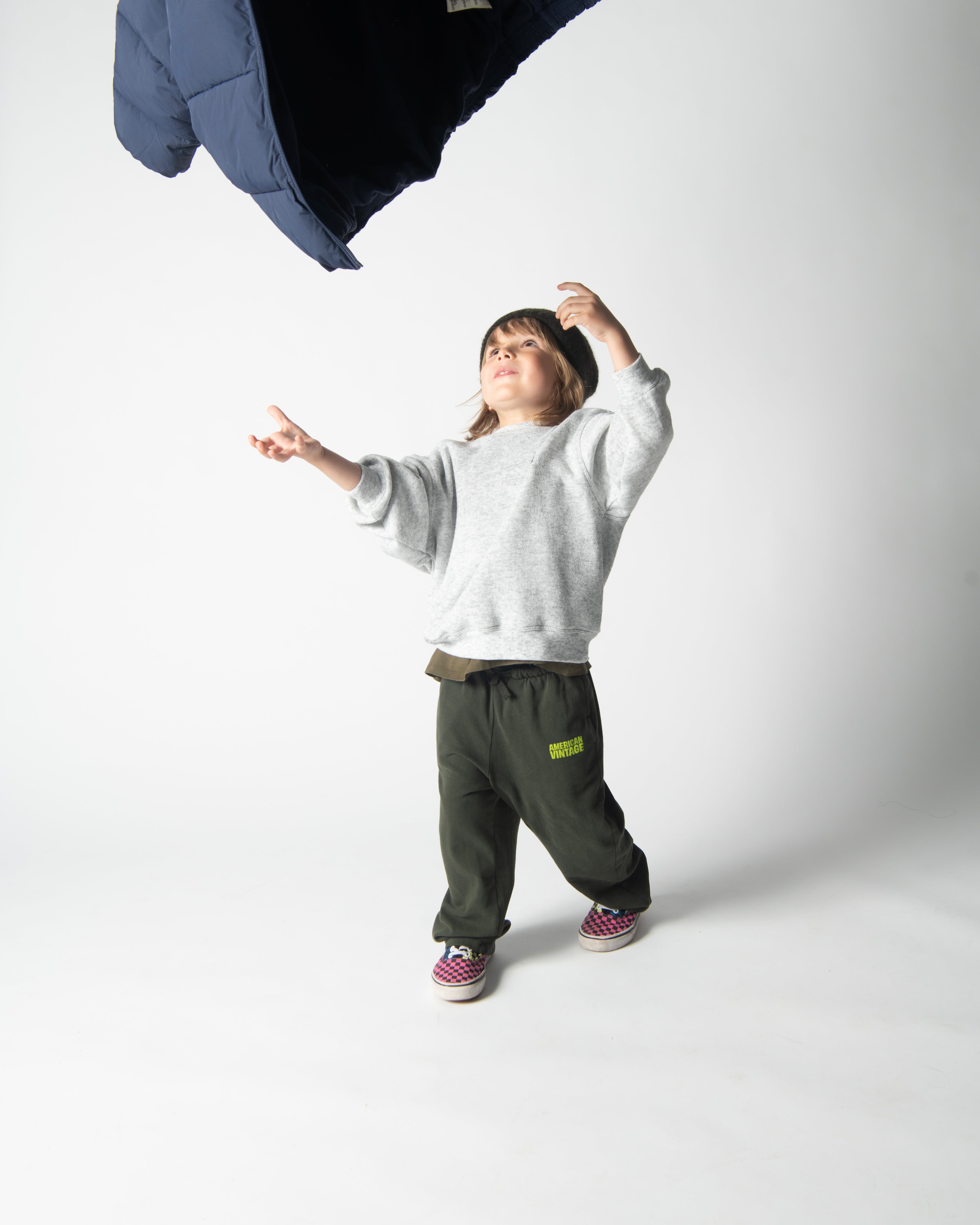 淡いグレーメランジに胸元のパッチが効いたカジュアルな1着です。