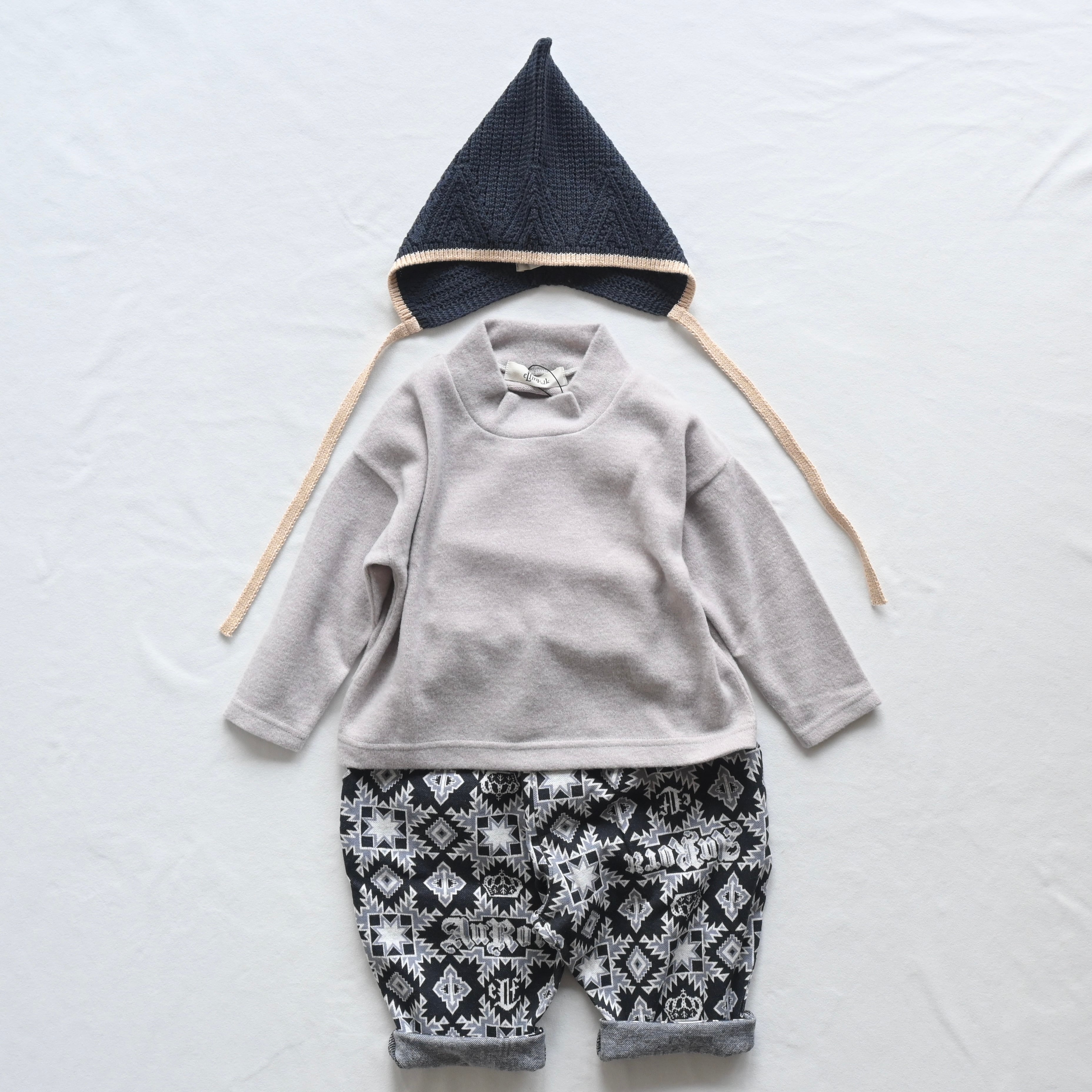 ふわふわで暖かいモックネックプルオーバーにエイトスター&ダイヤ柄のジャガードパンツを加えてフォークロアなスタイルに♪ ボンネットを加えて...童話のコビトちゃん◎