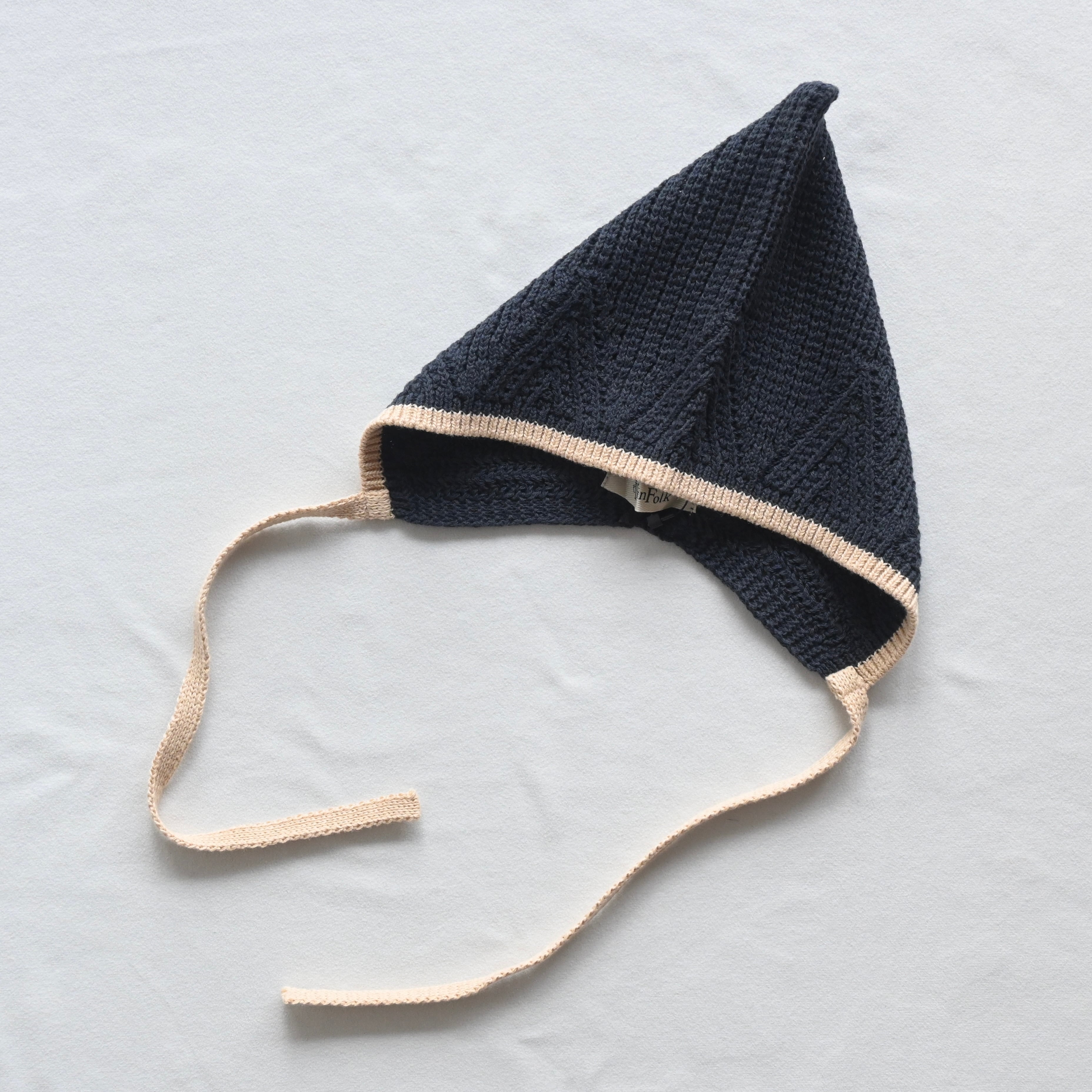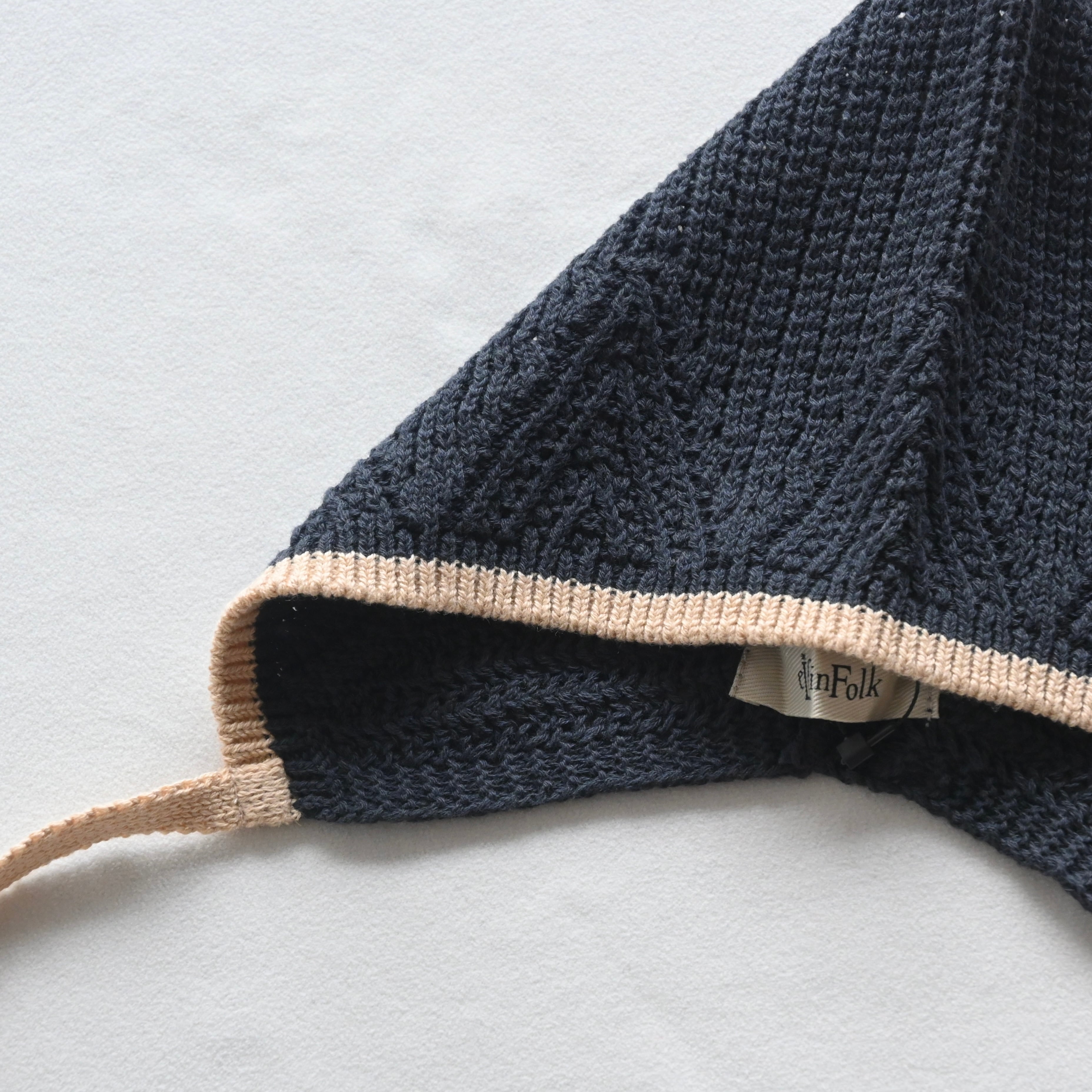 ◼︎eLfinFolk Lacework Knit Baby Bonnet / charcoal×beige / M 定価9,900円