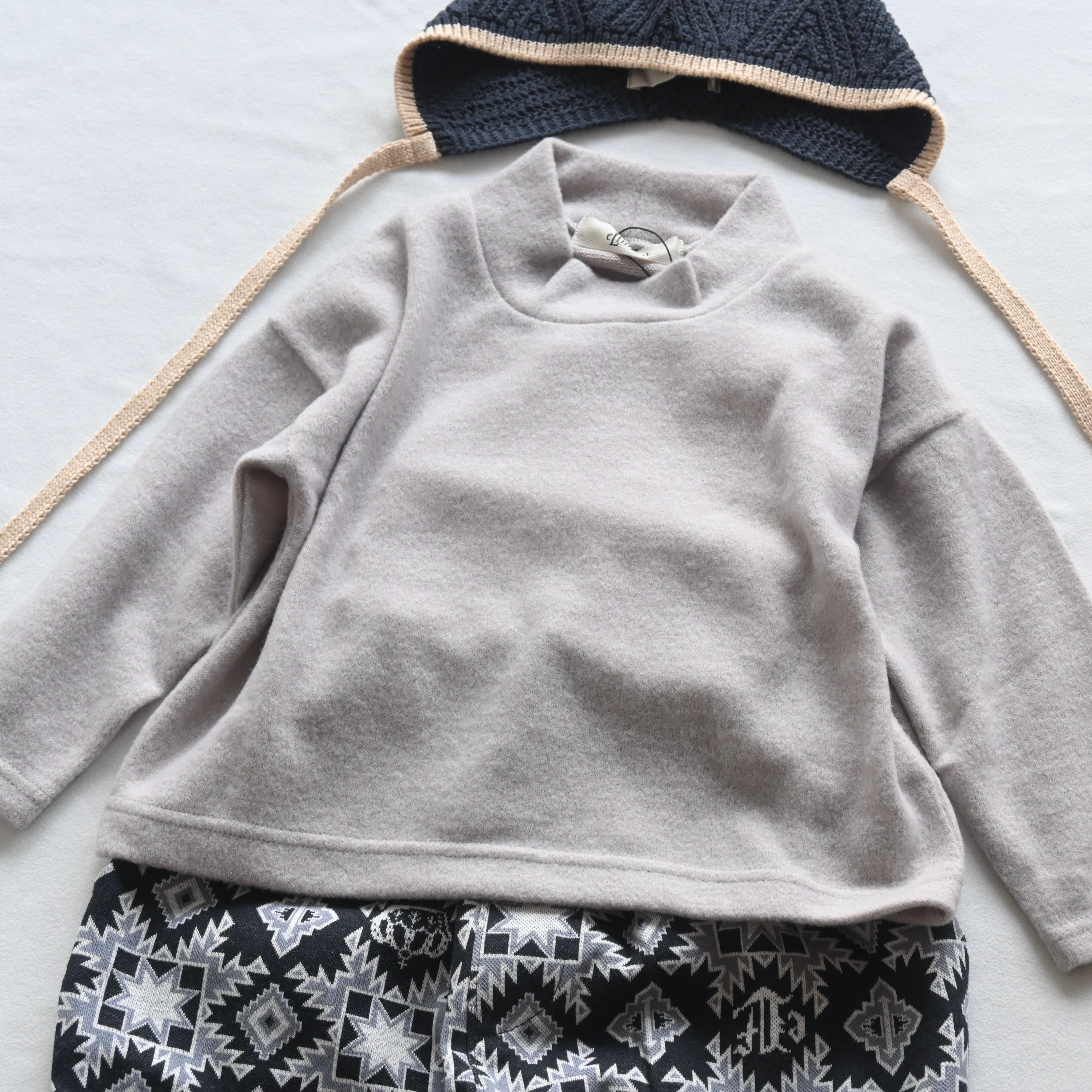 ◼︎eLfinFlok Fluffy mock neck pullover / sand beige 100cm 定価6,270円