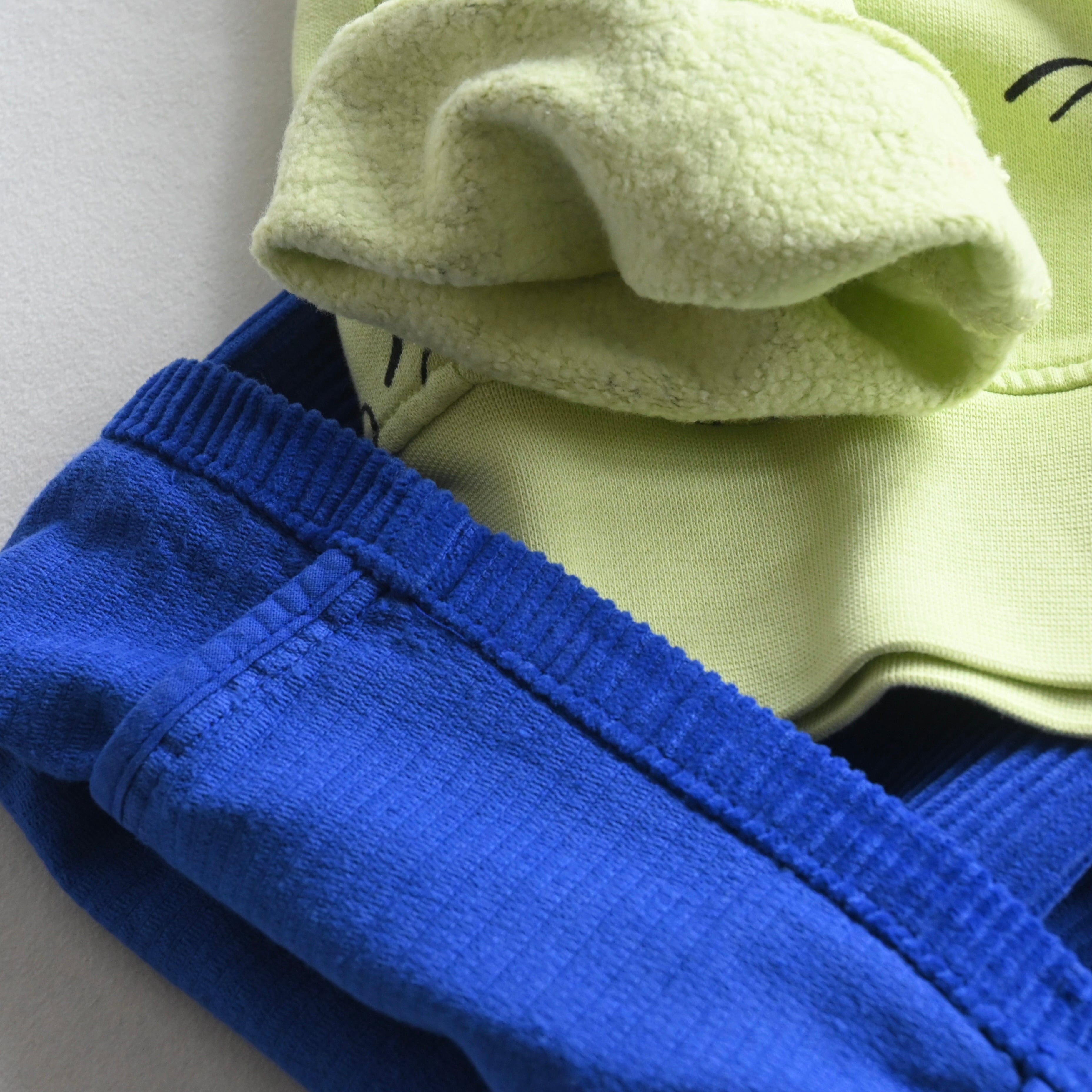 目にも鮮やかなウルトラマリンブルーのコーデュロイパンツで配色のかわいいコーデを♪