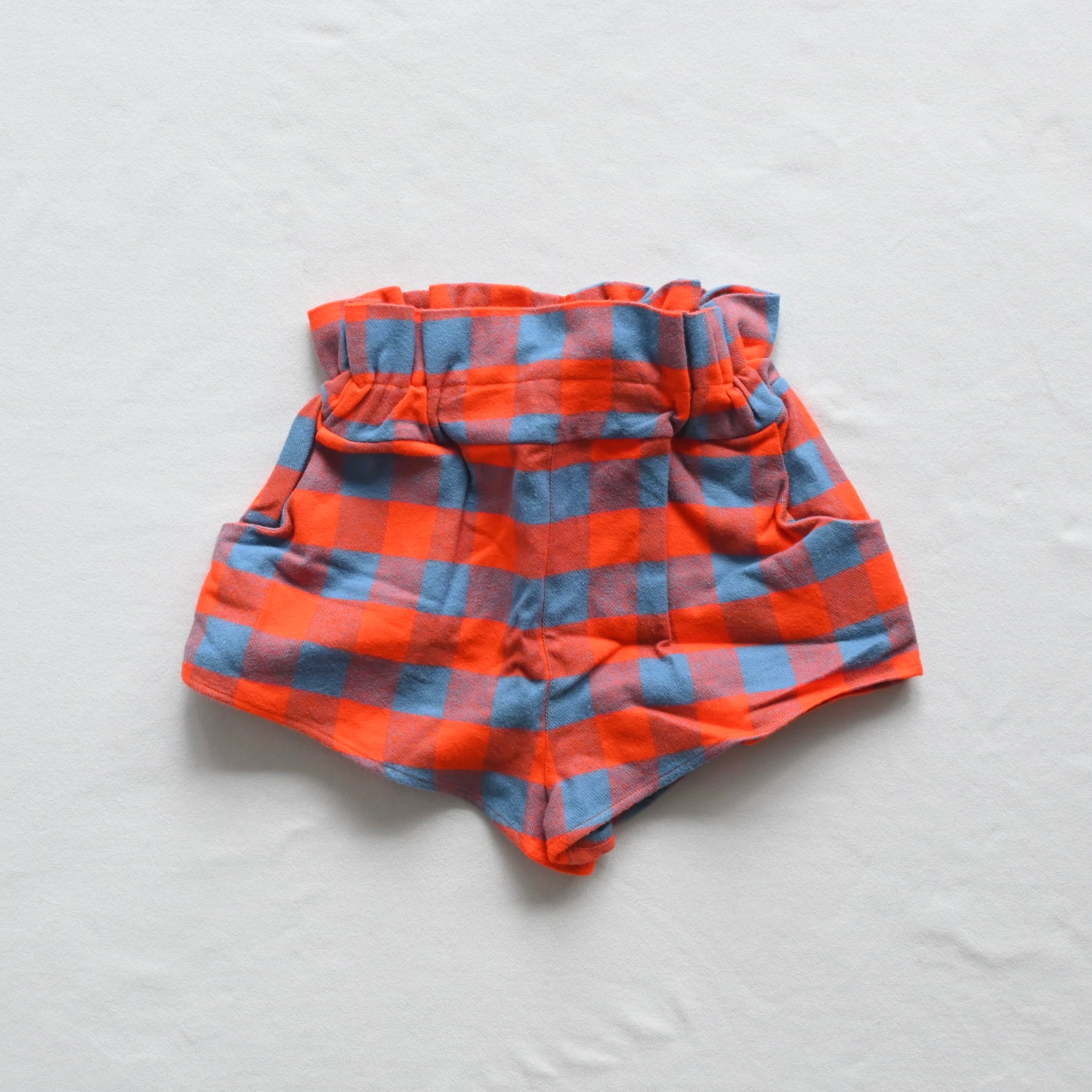 温かみのあるフランネル素材のレッドチェックショートパンツ。