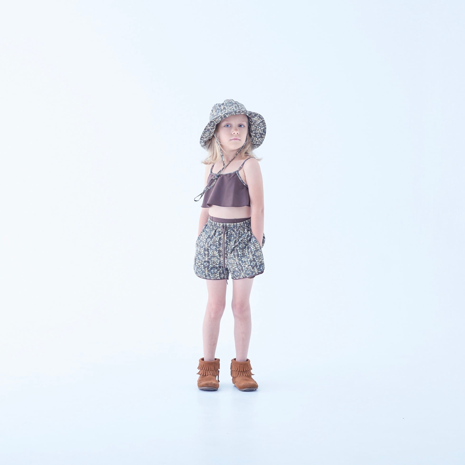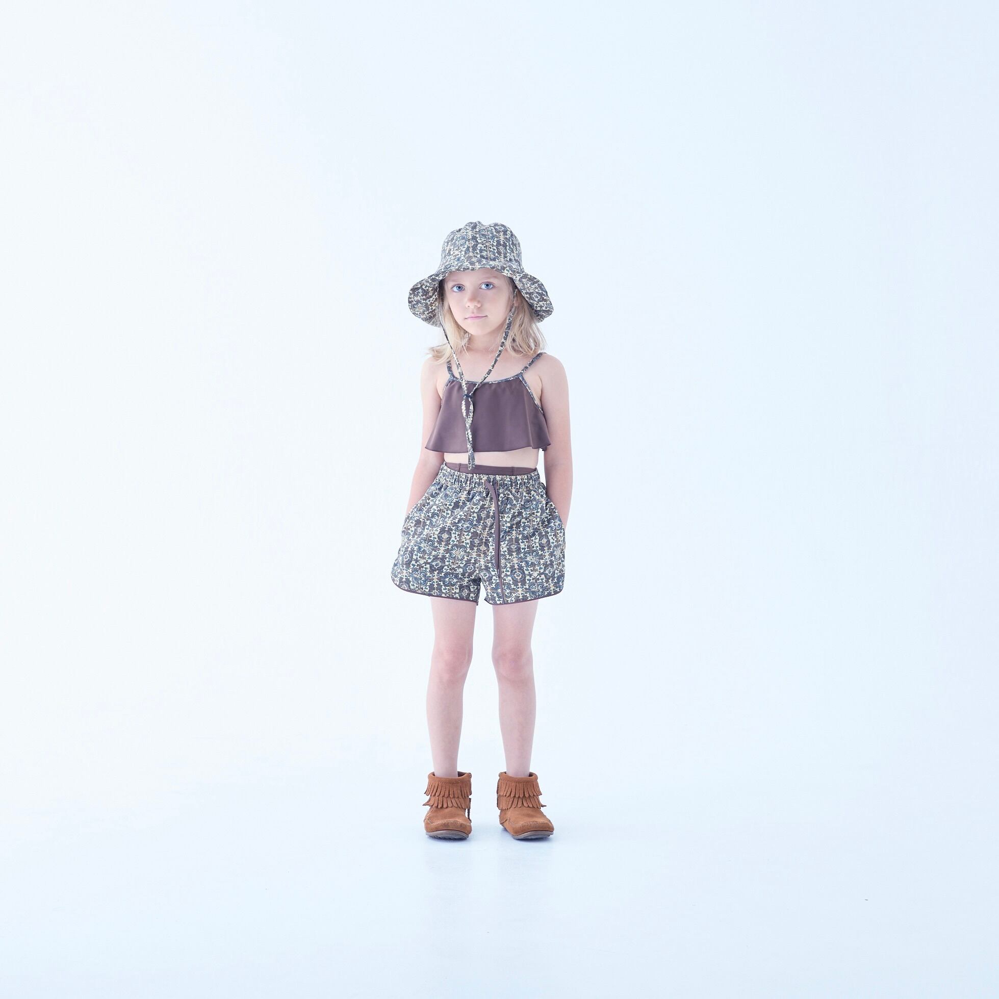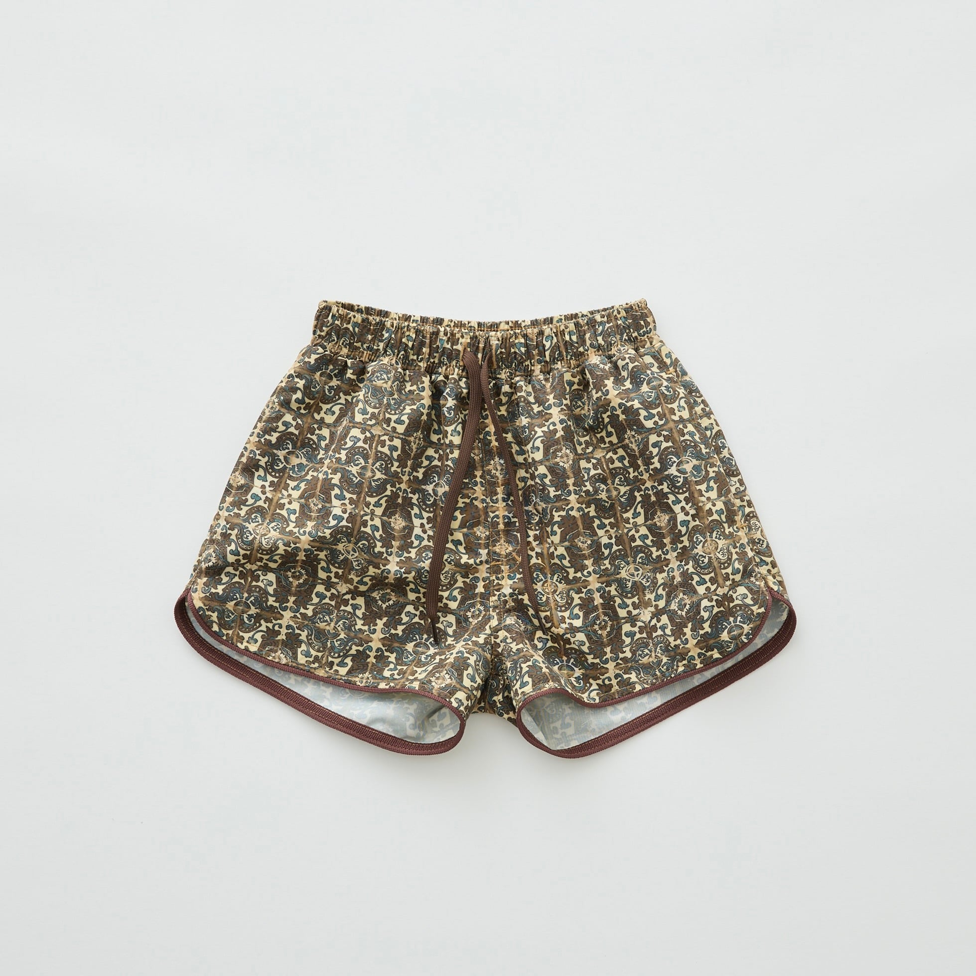 予約商品《eLfinFolk 2026SS》Old Tile Pattern Girls surf shorts / brown / 140cm
