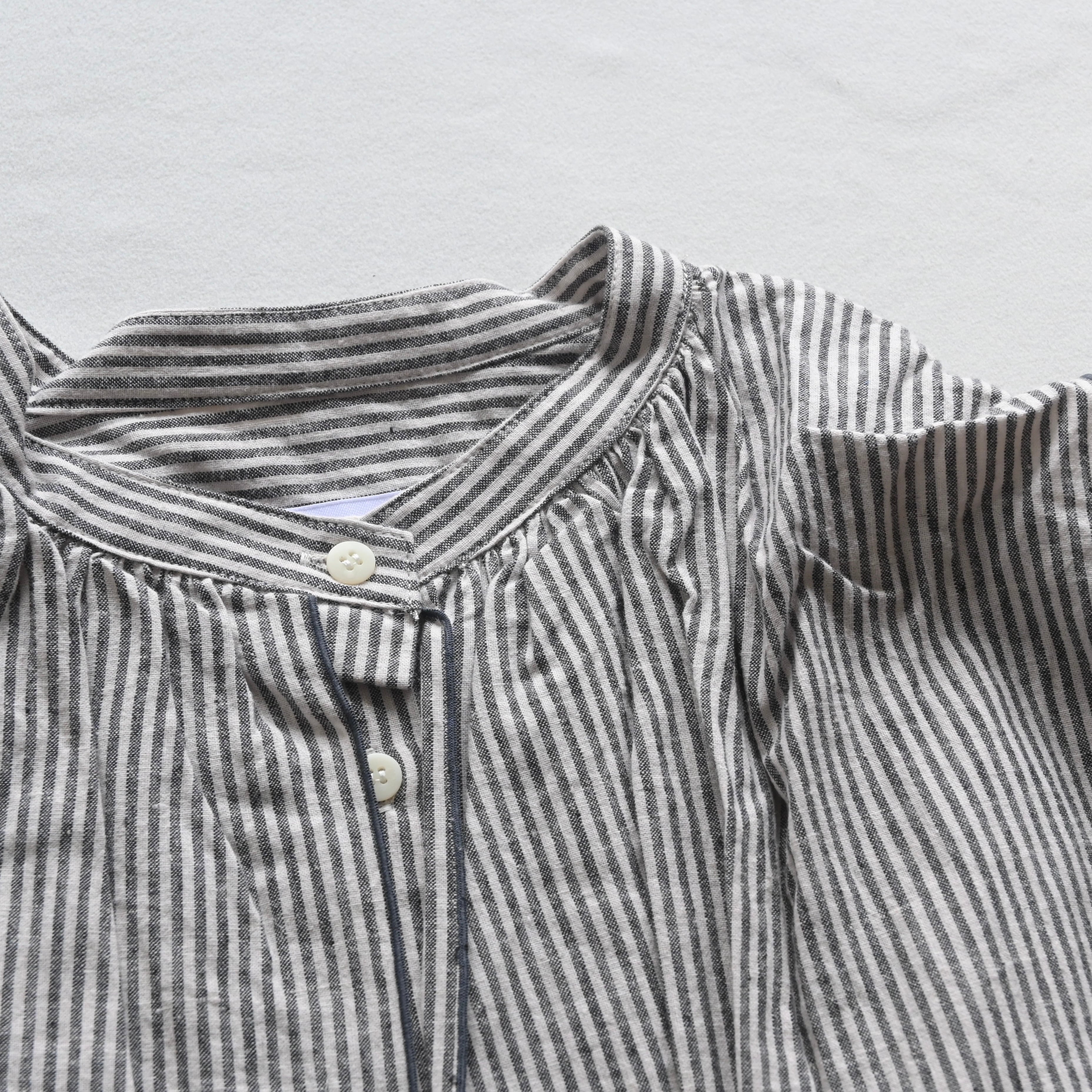 ◼︎michirico Front collar linen stripe shirts / 白 × 黒 / F(大人) 定価19,800円