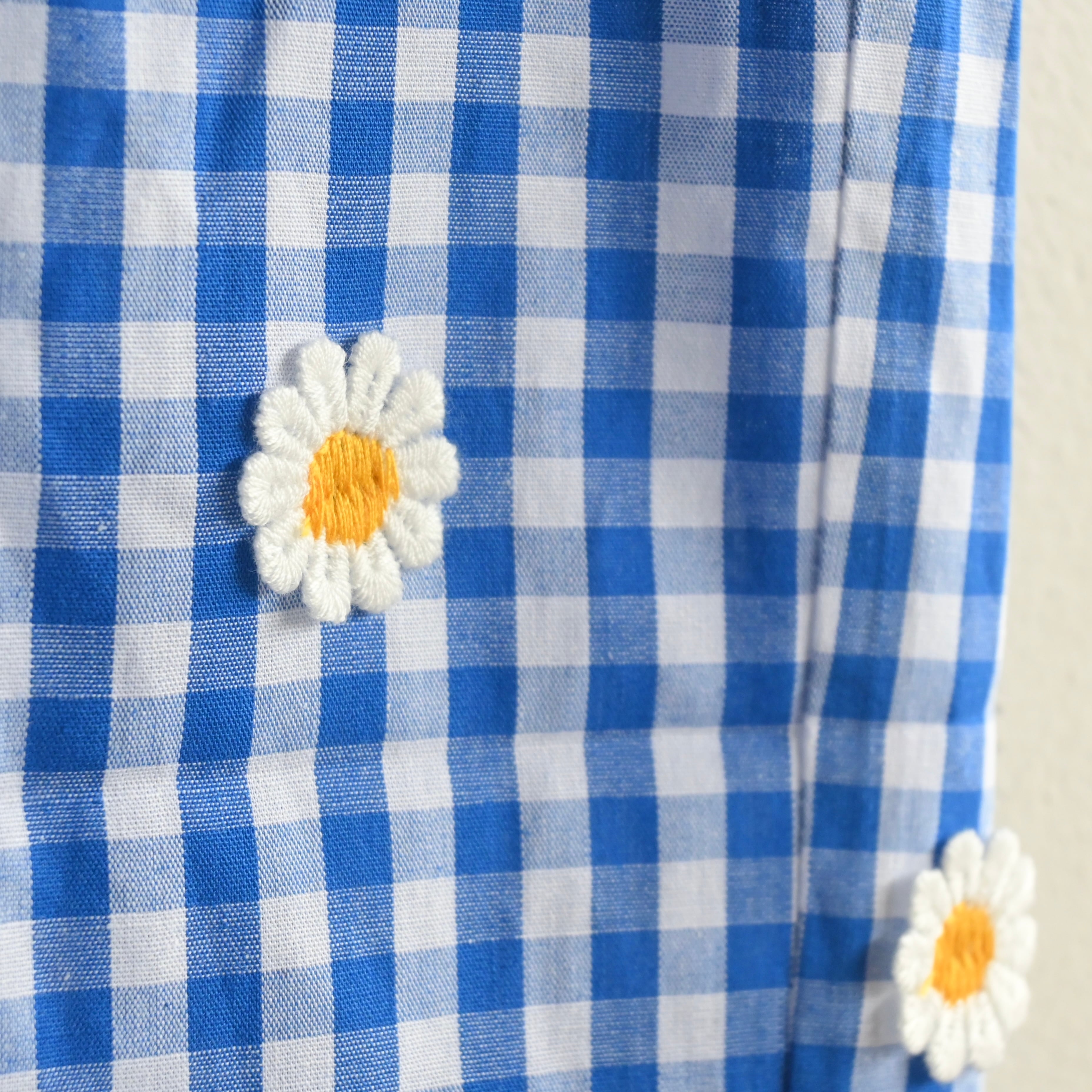 デイジーの刺繍アップリケが散りばめられたキュートな1着です。