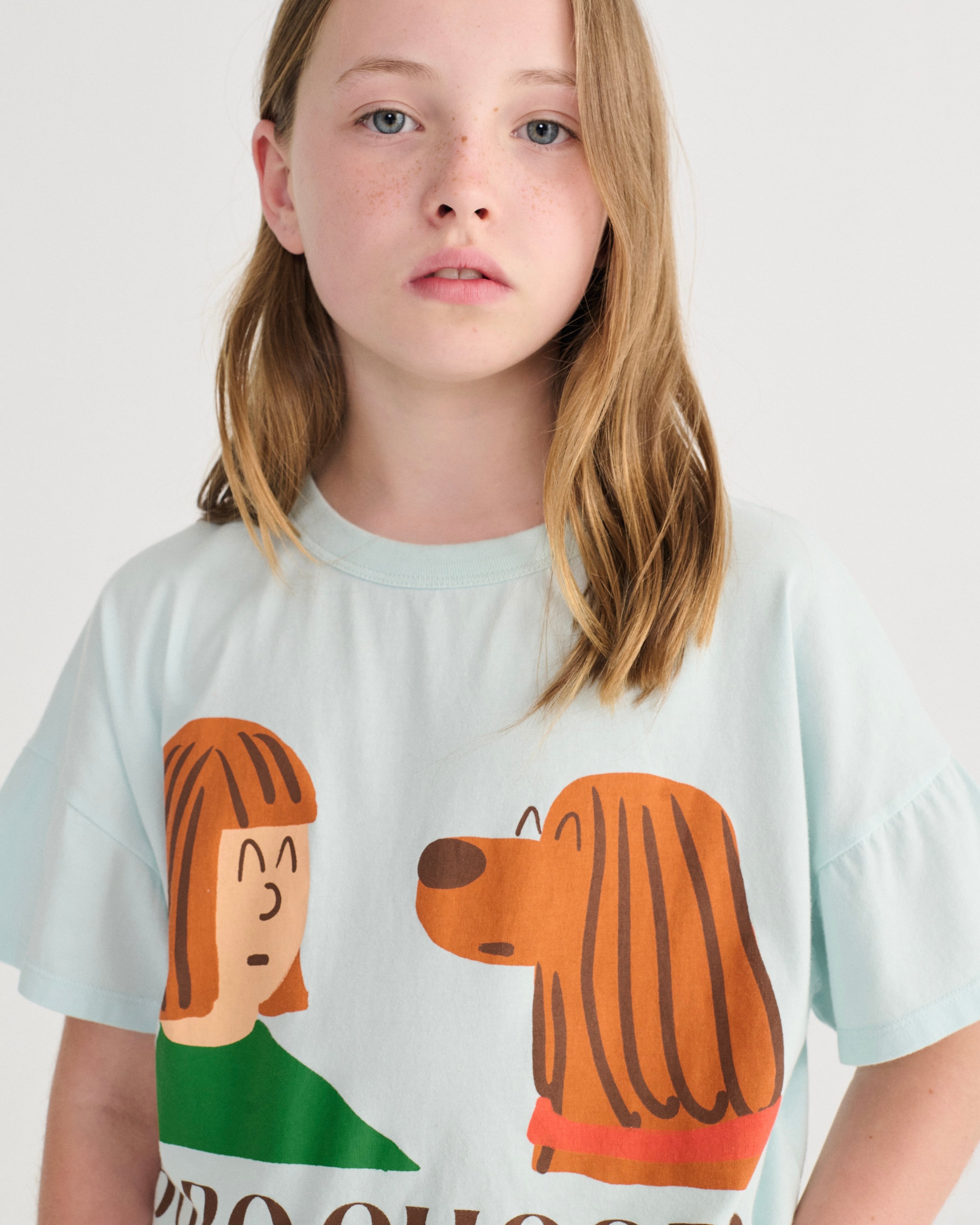 ワンちゃんと女の子のイラストの半袖Tシャツ。