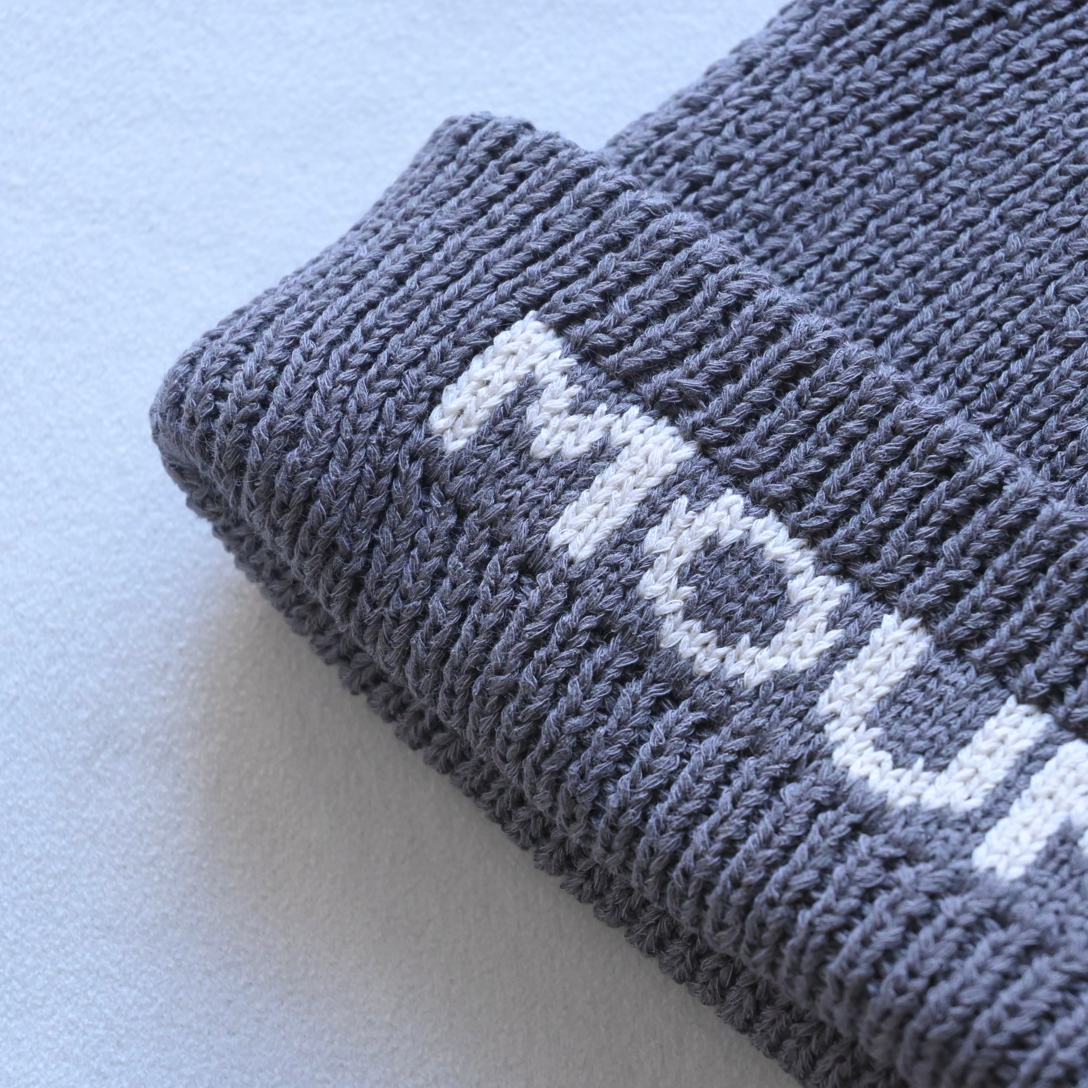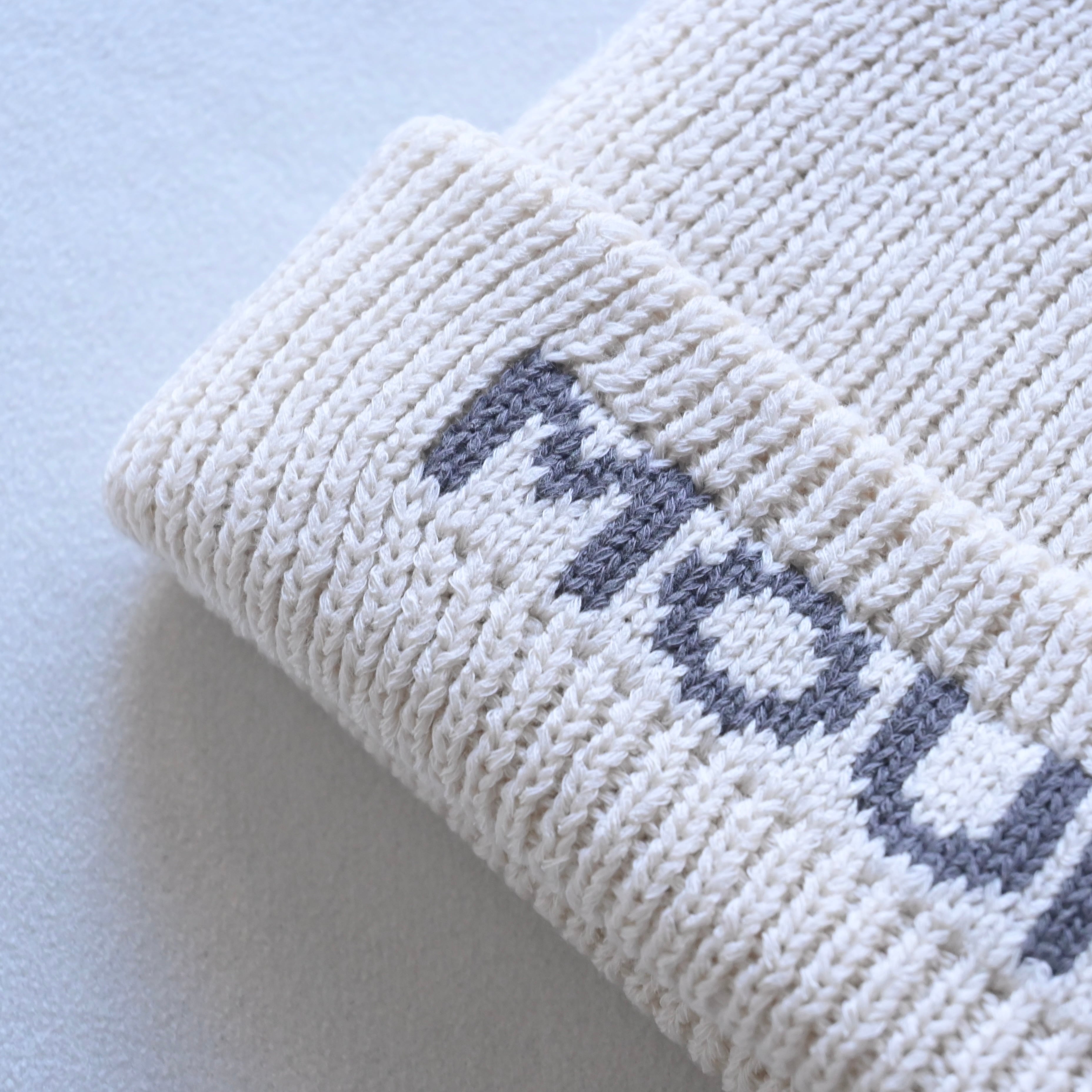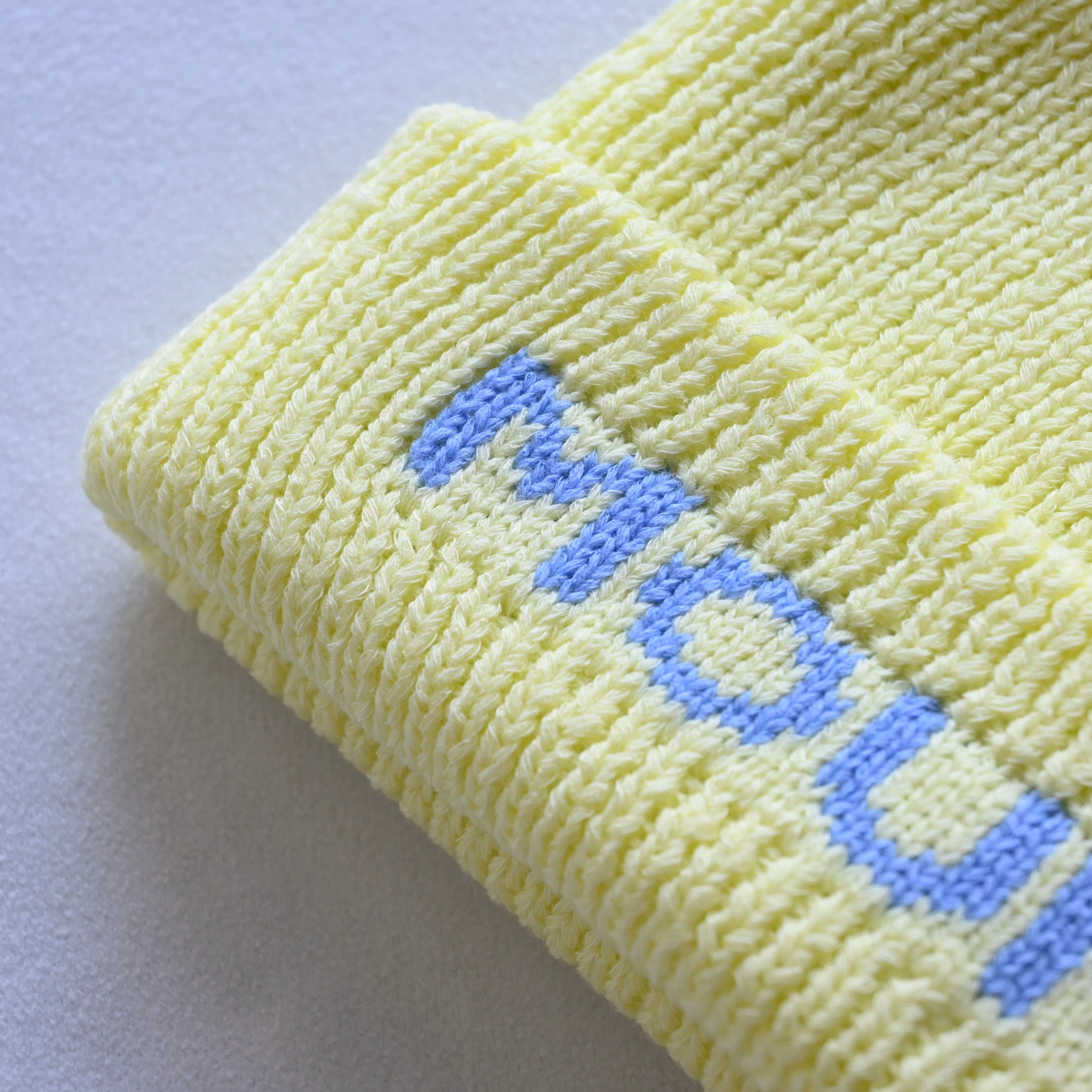 折り返し部分にジャガード編みでMOUN TEN.のロゴが入っています。