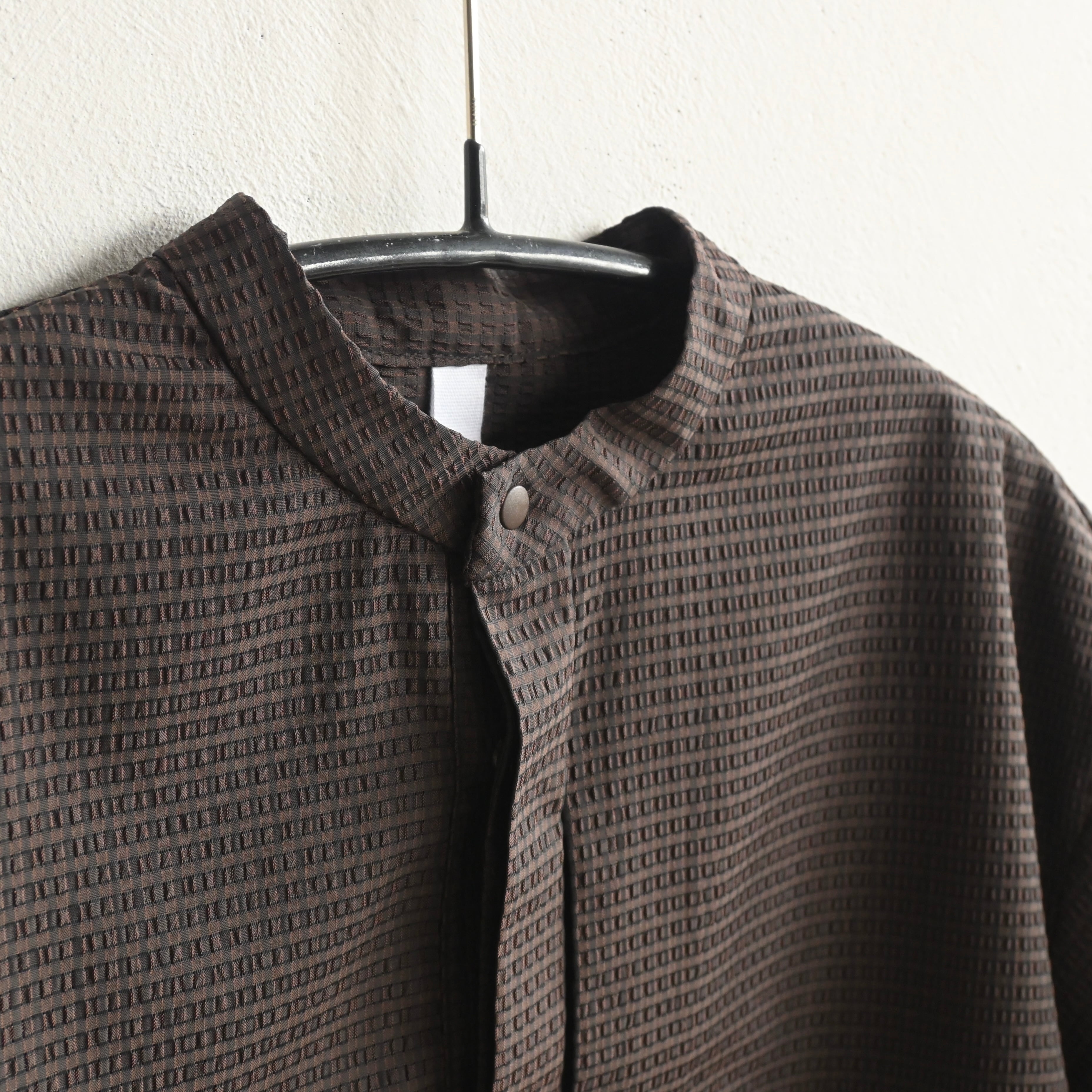 ゆったりとしたシルエットでリラックス感がありながら、定番バンドカラーでシャープな印象。