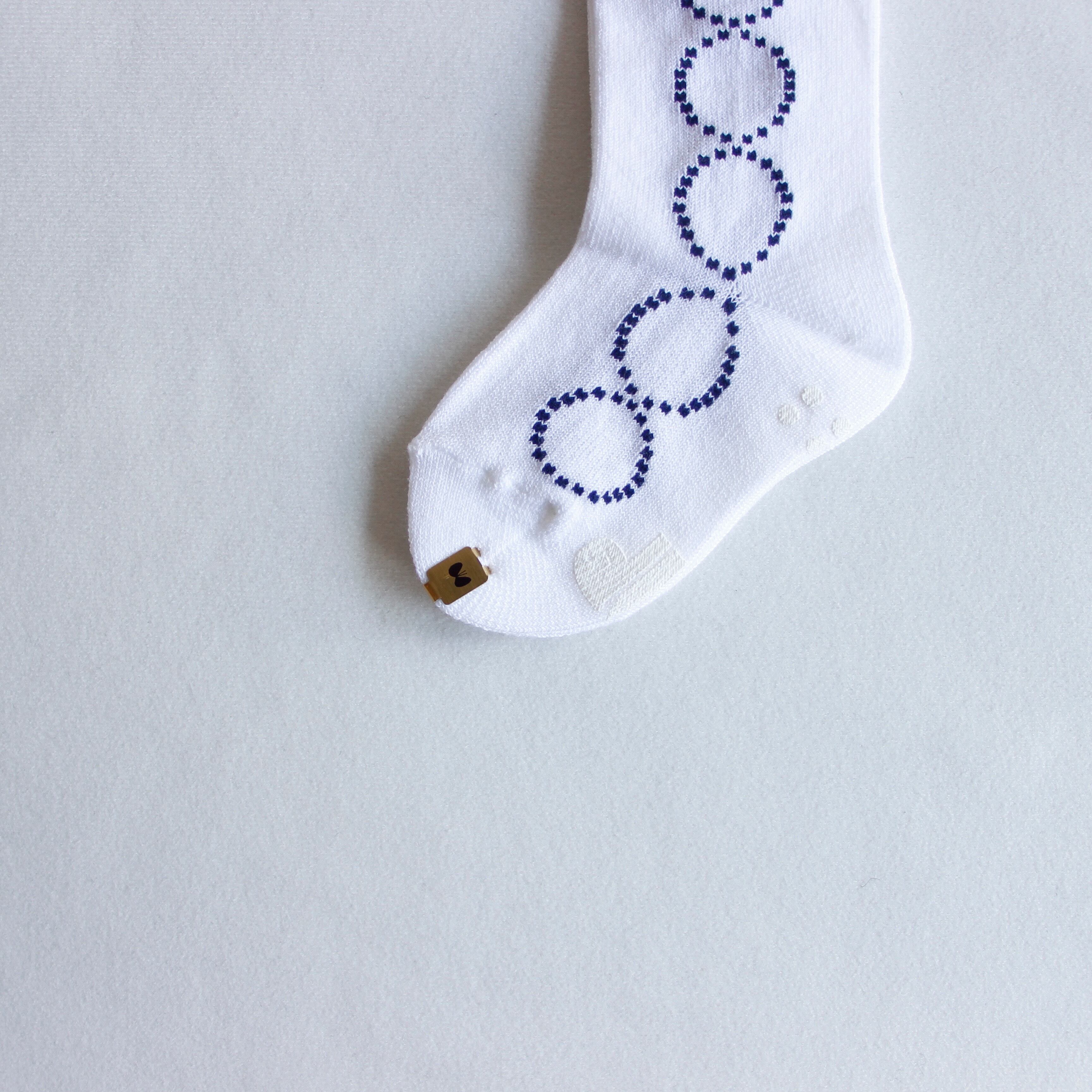 柔らかな雰囲気の円形のモチーフを側面に表現した“tambourine”ソックス。