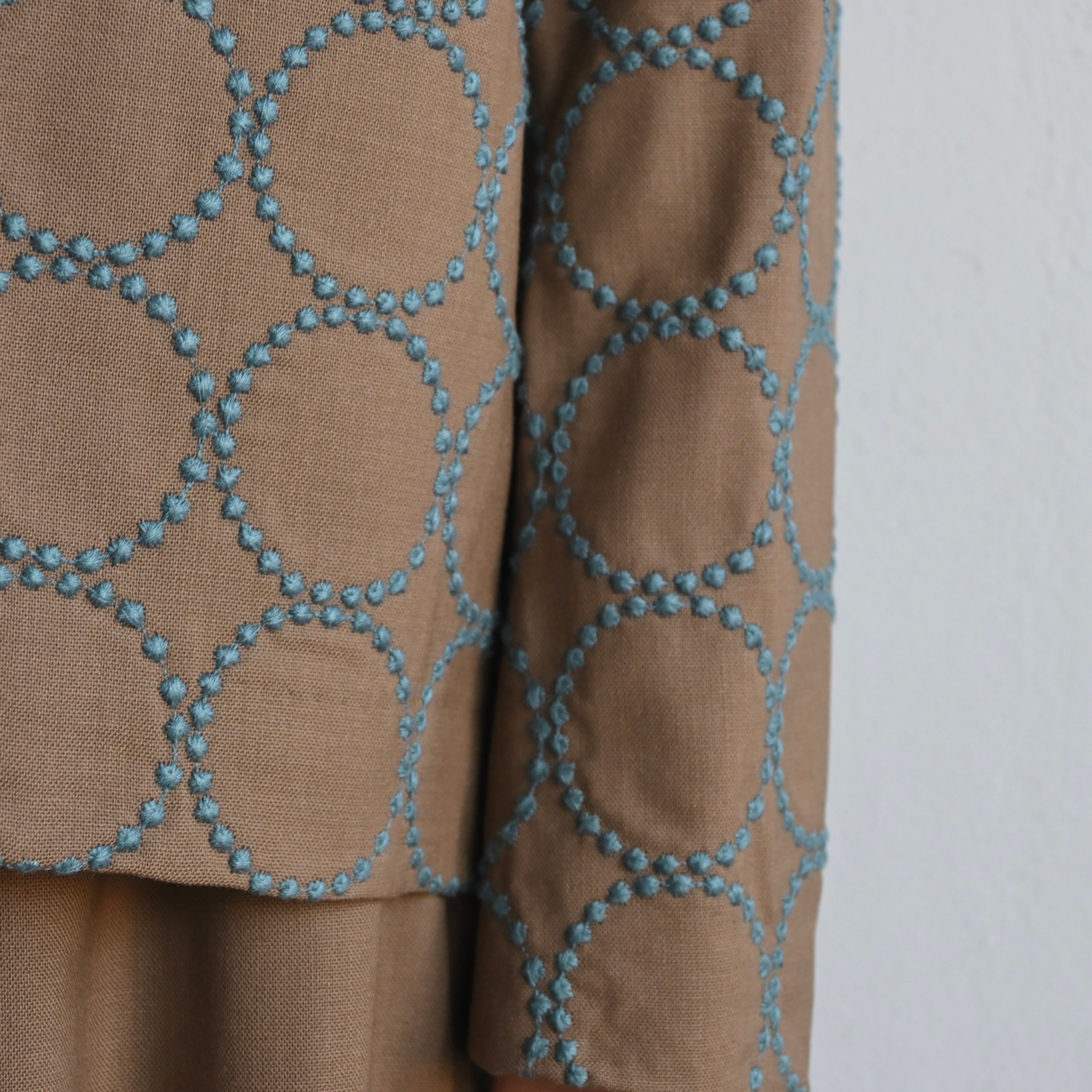 ブラウン地にブルーのtambourine刺繍が落ち着いた印象です。