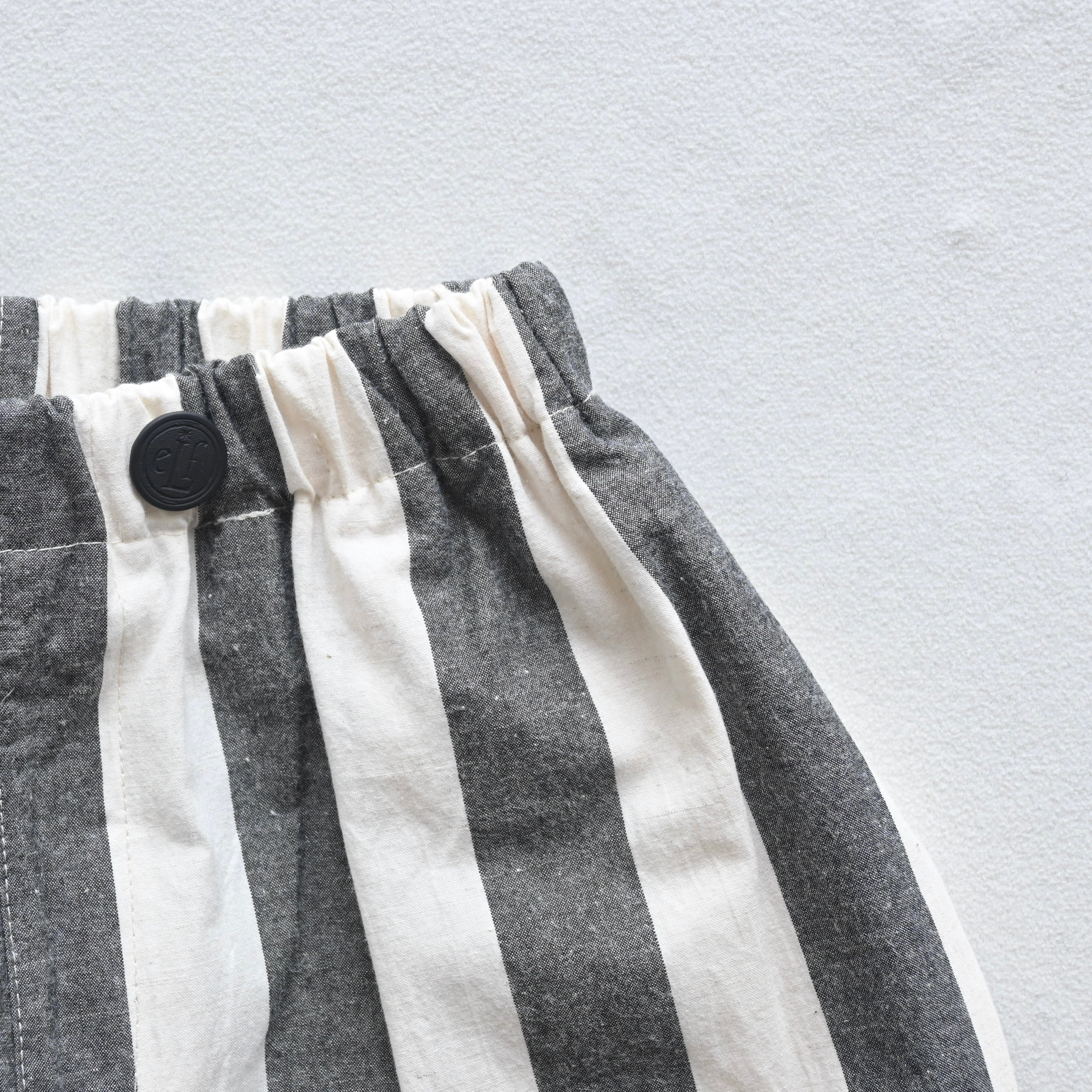 《eLfinFolk 2023AW》Cotton linen Wide stripe Pants / black